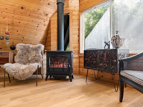 Welcome to Churn Creek Cottage. Tucked away near Churn Creek Bottom is this fully renovated A-Frame that has been transformed into a comfortable, quaint and private home. From the moment you pass through the gates, you are greeted with a zen garden and colorful, established landscape. Once inside the fully furnished home, you are immediately captivated by its character. The interior design is perfect to showcase the space. All appliances are new. Kitchen features butcher block counters. Solid wood white oak floors. This all electric home with well & septic could be a great candidate for solar! Garden features Swiss chard, garlic chives with room to add. Fruit includes mandarin, pomegranate, apple, lemon & orange. Outdoor fire pit area. 2 sheds & tools stay. Located in unincorporated area.
