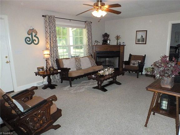 Peaceful, country setting on almost 4 acres, just mins from I85 & 52, restaurants & more. Enjoy morning coffee on your rocking-chair ft porch, back deck, or tinker in your powered storage bldg. Inside you will find a bright & cheerful move-in ready home w/ 2 BR 2BA, gas fireplace & a dedicated laundry rm/mud room b/t the kitchen & garage access. Abundant cabinet & counter space in kitchen. Lg eat-in bkfast/dining area. MA BR has 2 large walk-in closets.