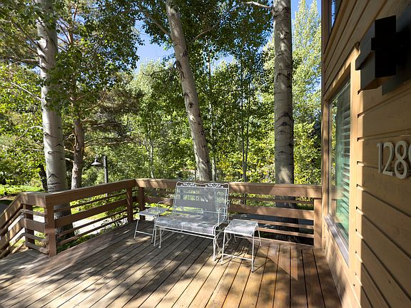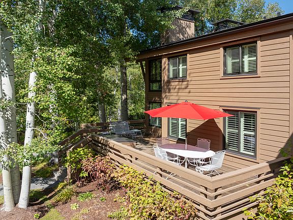 Classic Sun Valley Resort condo on Trail Creek, truly Creekside. Sellers handpicked the private lot before the condo was built in 1960s. Completely renovated, peaceful, light-filled end unit. A lovely, large kitchen with custom cabinetry and sumptuous granite counters awaits. The spacious primary suite offers a sitting area, desk. Bald Mtn views from both bedrooms. Detached garage, extra storage The spacious condo is in the core of the Sun Valley Resort, within walking distance of amenities such as the Sun Valley Lodge and Village, Pavilion, ice rink, restaurants, shops, and downtown Ketchum. The complex feels secluded while still being close to resort activities. Owners can annually purchase recreation passes to enjoy Sun Valley Resort amenities, such as pools, pickleball and golf. Close to many trails. Nordic and alpine skiing is 5 minutes away.