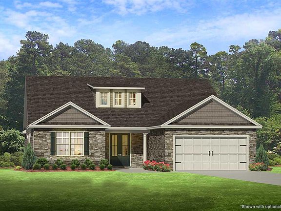 Beautiful wide open 11' ceiling, stacked stoned front and hardy board sided Cumberland two story with spa shower, 4' extended garage, and natural gas fireplace. This home also has the upstairs option with two oversized rooms and bathroom with small loft.