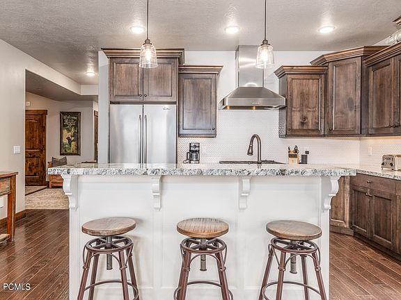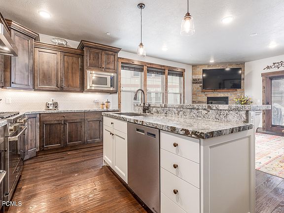 Conveniently located at the Jordanelle, this 3 bedroom/2 bath Village at the Shores condo is minutes to both the Jordanelle Marina and the new Deer Valley East Village ski area and resort base. Enjoy southeasterly views of the lake and the mountains from the expansive, covered deck, and cozy up to the living room fireplace on cold, winter nights. Beautifully designed with hardwood floors, granite countertops, Dacor kitchen appliances, and an open floor plan, this single-level, 2nd-floor corner location is an ideal choice for a low-maintenance primary residence or a dream vacation home in the mountains. Nightly rentals and pets are permitted, and there are 2 parking spots (1 assigned,1 unassigned) in the heated garage. Guest parking is available in the garage and in the cul-de-sac outside. Access to the SLC International Airport is an easy 40-minute highway drive without even a stoplight, and it's a quick, 15-minute trip to downtown Park City or Midway/Heber.