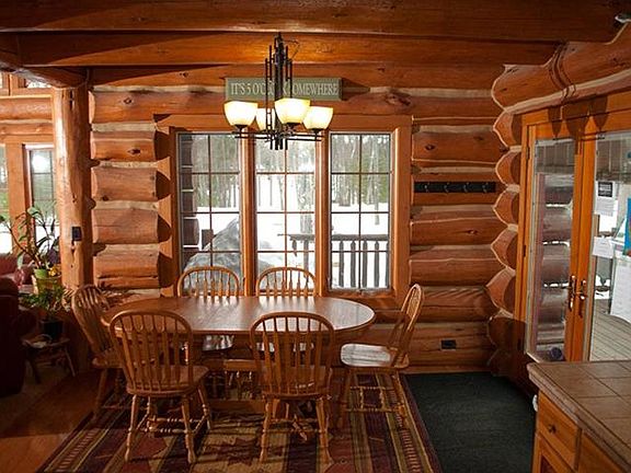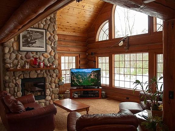 Garland Log Home on 2.71 acres and 150' sand frontage. 4 bedroom, 3 bath, over 2350 + sq. ft. and 1040 sq. ft. 4 car plus garage with upstairs space for bunk room or office, insulated and ready to go. From the cedar ash kitchen cabinets to the stainless appliances to the floor-to-ceiling stone fireplace its like living at a high end resort but your minutes from town. Enjoy crystal clear no wake Little Bass Lake. The lake is filled with bass Panfish and is 45' deep. Great swimming for the kids and a long yard for out door fun to the lake. Plus property includes outdoor patio, a playground, fort, + shed for lake toys. Dock is all ready to go. Recently added lower level remodel with family room and 4th bedroom with egress window, wet bar and small office or storage and full bath. (near completion) Enjoy your movies or Packer Games/Bear Games down there away from the world. If you're a log home lover you have to see this. Priced well below replacement.
