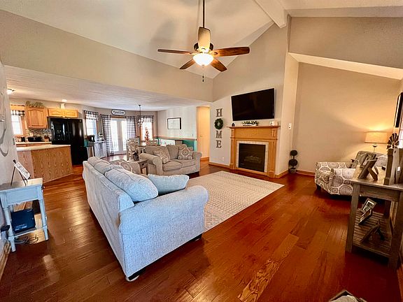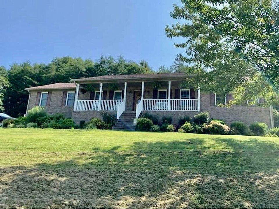 Imagine relaxing on this covered front porch with lovely views of this traditional brick ranch home. Offering 3 bedrooms, 2 baths, gorgeous hardwood flooring, large spacious living room with vaulted ceiling and gas log fireplace. A Lovely Master suite which includes a large bath with walk in closet. Basement features a custom built bar with room for a game table that opens to a large family room, Completing the level is an extra bedroom, office and large storage room. Home sits on 2.413 acres of property. (Seller is a licensed KY real estate agent and the listing agent)