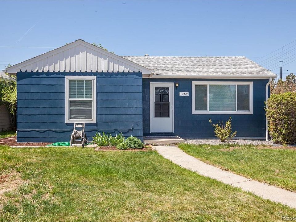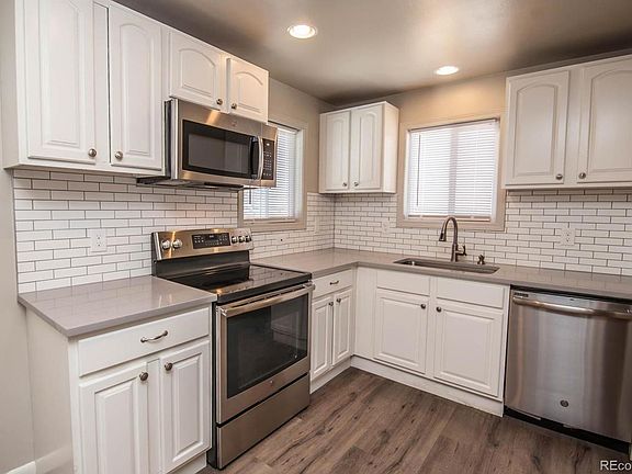 A lovely ranch-style house on a sizable corner lot! This house exudes flair and individuality thanks to the gorgeous exterior paint hue. The family room and both bedrooms have authentic oak hardwood flooring that greet you as soon as you walk through the front door. Tastefully refurbished with white cabinets, quartz countertops, subway tile backsplash, stainless steel appliances, and more recent vinyl flooring, the kitchen has been upgraded. Talking with loved ones in the family area is made easier with an open-concept kitchen. Two bedrooms and a fully renovated bathroom are located down the hall. There are two large windows in each bedroom that let in a plenty of natural light. The expansive concrete patio situated in the backyard is ideal for alfresco cooking and dining, and serves as an ideal area to relish your morning coffee.