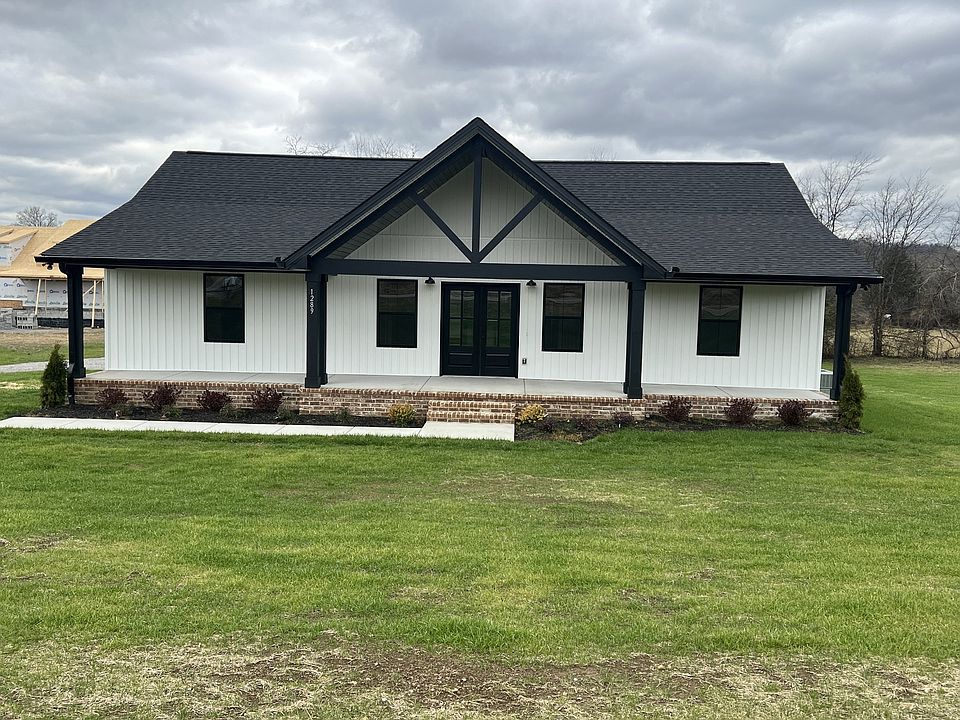 STILL SHOWING & TAKING OFFERS. CURRENT CONTRACT HAS A SALE OF HOME CONTINGENCY WITH A 48 HOUR 1ST RIGHT OF REFUSAL. This new construction, single level ranch sits on 1.55 acres and less than 15 min. from Gallatin. This home gives all the farmhouse feels, from the large wooden beams above the porch, the tongue and groove ceilings on the covered front and back porches, to the black & white exterior and interior finishes.