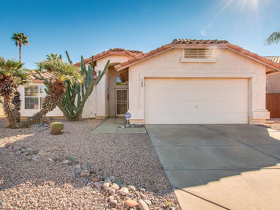 Luxury, convenience and affordability all rolled in! This is the home you've been waiting for! The updated kitchen features eye catching granite countertops, exquisite glass subway tile backsplash, and stainless appliances. Enjoy entertaining the AZ way with the inviting pebble tec pool with built in water feature and large covered patio. The vaulted great room is open and inviting with upgraded tile throughout. The Master bedroom boasts bay window, walk-in closet and full bath. The Guest bedroom enjoys a window seat and corner shelving. Easy maintenance landscaping. Low HOA fees. Close to Chandler Mall, hospital, restaurants, the freeway and shopping galore! Ready to call this place HOME? Come take a look!