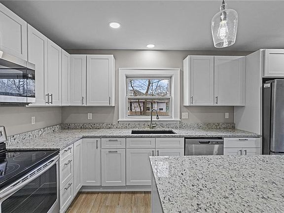 What better way to start your new year in a new home! This 3 bedroom/ 1 bathroom home has been completely renovated! A brand new kitchen features white shaker cabinets, granite countertops, and stainless steel appliances. The white subway tile shower is a stunning feature in this bathroom, along with matching granite countertops. The first level of your new homes also features a first floor bedroom, living room and formal dining room for the family to gather during the holidays! Upstairs you will find two additional bedrooms along with another room that could be used as an office, walk-in closet, or playroom! This house has been completely re-wired by a master electrician. The exterior of this property features a brand new roof, newer windows, wood siding that has been painted and a newly paved driveway! If that isn't enough, enjoy the luxury of storing your car or motorcycle in your oversized one car garage! Great home, contact today!
