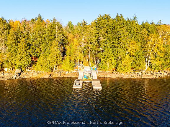 Little Kennisis Lake - Main Floor Lakeside Living at Its Best! Welcome to this stunning 4-bedroom, 2-bath bungalow offering over 2,000 sq. ft. of single-level comfort on the shores of Little Kennisis Lake. Set on 0.73 acres with 158 ft of rocky shoreline and due west exposure, this property delivers unbeatable sunsets and deep, clean swimming right off the incredible docking system (13 ft deep at the end!).Inside, enjoy the ease of main-floor living with open, light-filled spaces, pine ceilings, and two beautifully renovated bathrooms. The showpiece screened in porch features four skylights and stunning lake views - a perfect spot to unwind. The detached 3-car garage, currently used as a workshop, offers exceptional storage and hobby space. Outside, relax in the hot tub, make use of the storage shed by the water, and entertain with outdoor furniture and eight Adirondack chairs, all included.With a drilled well, municipally maintained year-round road, and a fully furnished, turnkey setup, this is lakeside living made easy. A rare combination of space, comfort, and classic Haliburton charm - ready for you to move in and start making memories.