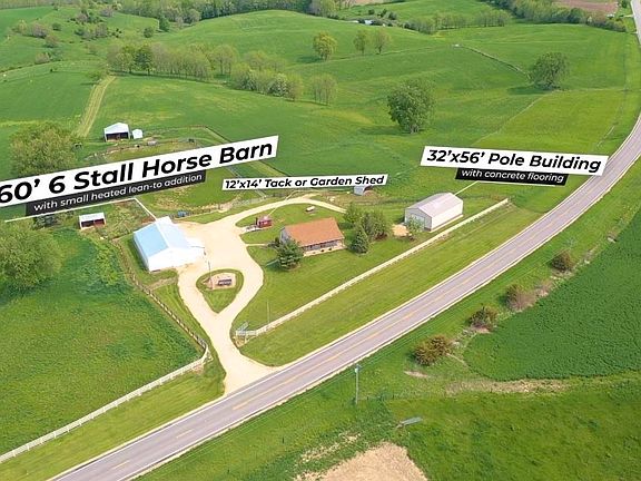 - Additional structures: Barn(s), Corral(s), Outbuilding, Outbuildings: 40x60 horse barn; 32x56 shop w/conc flr; 3 open-face livestock shelters; 4 smaller storage sheds.