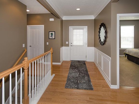 Beautiful, welcoming entry takes you to a very open floor plan with hardwoods & plenty of living space! Britton Falls floor plan w/o the Britton Falls price! Kitchen overlooks Great Room w/ fireplace, 42" Maple cabinets, SS apps & Corian counters. Tiled sun room & deck overlooking pond - no neighbors behind you! Finished basement features bar & plenty of room to entertain! Tons of storage! Relax - The yard work & snow removal is done for you! Custom landscape & upgrades galore!
