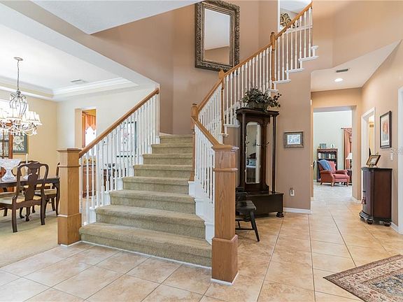 SPECTACULAR POOL HOME WITH LOTS OF SPACE FOR YOUR FAMILY! This home has great curb appeal with mature landscaping, front porch and decorative shutters. As you enter the foyer, the sweeping staircase is the focal point between the cozy formal living room and dining room. The dining room has trey ceiling detail and three windows placed high on the side wall for light and privacy. Throughout the interior of the home, there is an abundance of natural Florida sunshine shining through the many large windows. The open kitchen and two-story-high family room span the back of the home--a great place to gather when relaxing and entertaining. The kitchen features warm honey toned maple raised panel 42 inch wood cabinets with contrasting dark granite counters, center island, stainless steel appliances, desk area with butler's and closet pantries. There is even a window above the sink for a view while doing the dishes. Just to the right of the foyer along the main hall, the first floor bedroom and ensuite bath (bath also has front hall access) which are perfect for guests or could be a study/home office. The master suite is upstairs with a spacious sitting area with the feel of being in a turret, roomy walk in closet and spacious ensuite bath with separate garden tub, shower and a long two sink vanity with lots of storage. Three other bedrooms and a full bath are also on the second floor. Truly a family friendly house with all of the many bedrooms. The screened lanai and pool with a large paver deck are a great place to hang out on a sunny day in Florida! There are two A/C unit, one new in 2017, one just replaced March 2020. The Lakes of Windermere amenities include a swimming pool, play ground and park. This charming and spacious Windermere home is located close to desirable schools, restaurants, shopping, area parks and attractions with access to major roads.