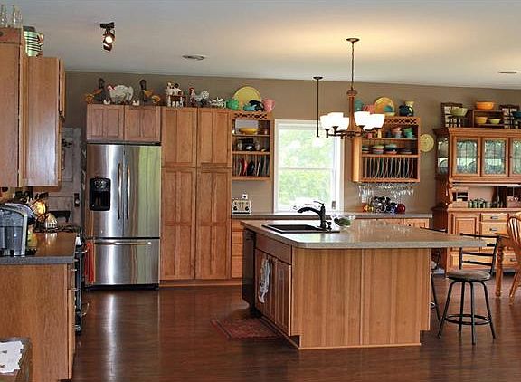 Perfect mix of country living and city luxury. Amazing open floor plan you have been dreaming of with beautiful custom cabinets and solid service countertops in the spacious kitchen. Numerous windows allow for a bright airy feel throughout the great room. Awesome barn style doors to the bedrooms are a great touch. The master bathroom has a walk-in double tile shower and oversized jetted tub. This home is energy efficient with 6" walls, an attic fan, quality tilt-in windows, and an outside wood furnace with electric back-up. Beautiful outdoor living with patio and built-in fire pit overlooking a scenic pond. Other outdoor amenities include a Barn and concrete pad for basketball court. This is a must see home for anyone wanting a few acres and a beautiful home!!