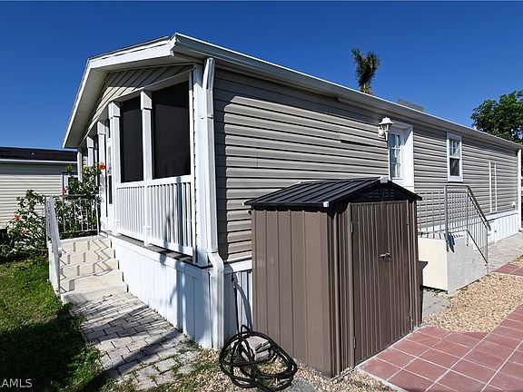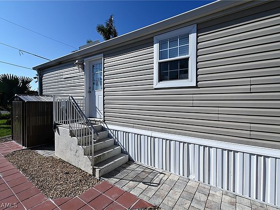 NO HOA - NO LAND LEASE FEE!!! This beautiful home manufactured in 2019 comes turnkey and has everything you are looking for. Located between Sanibel Island and Fort Myers Beach. Enjoy fishing, boating, restaurants and the live the Southwest Florida lifestyle. With a big back yard you have plenty of space to entertain or use a fire pit and settle down after a long day and enjoy the quietness. The big screened lanai offers a great spot to enjoy the view and relax with a cold drink. There are 2 storage sheds attached to the house to accommodate your lawn mower and electric 2 scooters (which can be bought for an additional $3,000 with remaining warranty) The open floor plan makes this home spacious and with the modern look does not compare to anything else. 2 bedrooms, 2 full bathrooms, indoor laundry, kitchen, dining and living room.