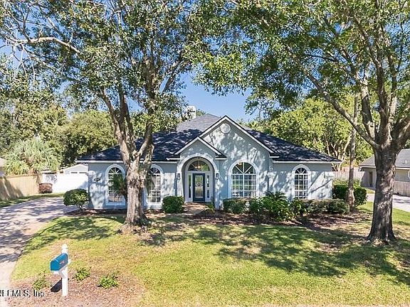 Live the Florida lifestyle in this gorgeous salt water pool home nestled among tree-lined streets close to beaches, St. Johns Town Center, & Downtown. NEW ROOF, HIGH EFFICIENCY HVAC, & HWH IN '24. NEW WIFI ENABLED GARAGE DOOR & EXTERIOR PAINT IN '23! Open plan boasts 10' ceilings full of natural light, hardwood floors throughout, designer lighting, & 2-sided Fire Glass gas fireplace. New kitchen upgrades inc granite tops, sink & faucet, Maytag Dishwasher, & LG refrigerator connected to multi-filter osmosis system for water/ice. Luxurious master shares French doors to office/BR, has large walk-in closet, & the ensuite bath has his/her vanities, walk-in shower with spa jets, and jacuzzi tub. Guest bath updated too. Collapsible sliders lead to a private outdoor oasis with refreshing salt pool & soothing waterfall, curtained canopy with fan for shade, & BBQ area with gas hookup, plus there is a workshed & Wifi irrigation system on well. MUST SEE!