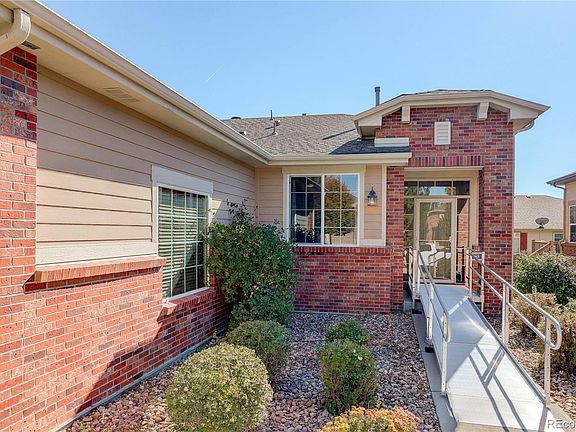 Welcome Home To This Beautiful ranch style townhome In The Highly Desirable Veranda Community. Handicap Accessible! Front entry features a metal ramp that can be removed. The Main Level Features a Beautiful Kitchen with all Appliances, a large island and spacious countertops. New windows throughout the home! The hardwood floors flow from the entry throughout the main living space. The Bright Dining Room opens to The Family Room which has A Cozy Gas Fireplace, Ceiling Fan and many built ins. The Main Floor Primary Suite Features a 5 Piece Bath with Double Sinks, Large Soaking Tub, Oversized Shower W/Bench, Linen Closet And Huge Walk-In Closet. Grab bars installed! Laundry Room With Built-In Cabinets And Includes Washer & Dryer. Another Bedroom and Convenient Full Bath Completes The Main Floor. There Is A Fully Finished Basement including a bedroom/entertainment space, bar/small kitchen space, walk-in closet and a 3/4 bath with new cabinet. New Hot Water Heater! Outside You Will Find an oversized Trex Deck On The South Side To Enjoy The Outdoors. Sunsetter power retractable awning allows for comfort in the sunny afternoons. Oversized 2 Car Garage Is Drywalled with Penntek industrial floor coating. Solar fan for attic ventilation and extra insulation in attic for energy efficiency! Adams 12 Five Star Schools. Close To N Line Light Rail And Plenty Of Shopping And Restaurants Close By.