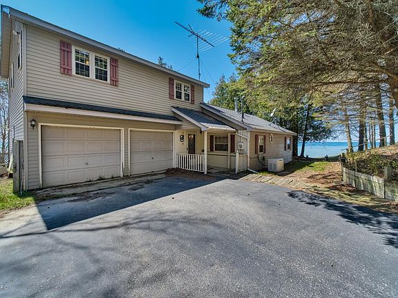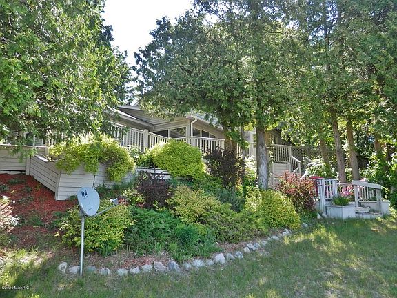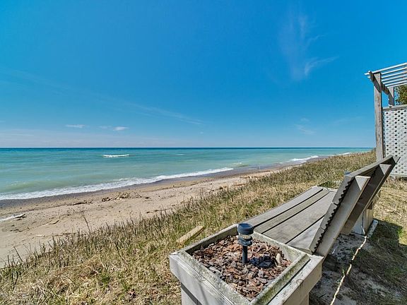 PIERPORT! 100 feet of walk right out, low bluff, beautiful LAKE MICHIGAN frontage that is not eroding! Deep lake lot with yard on both roadside & lakeside. This year -round lake home has open floor plan, living room with gas fireplace designed to heat entire floor, 3 season porch and 4 bedrooms with one on the main floor. Main floor remolded in 1993. A bedroom wing was added upstairs with 3 more bedrooms and 2 more full baths in 1999. Replacement windows. Newer carpeting. Multi-level decks. Covered Entry. Whole house generator. Incredibly beautiful area on M-22 corridor, close to Arcadia Bluffs Golf Course, Manistee & Frankfort. Location, location! Also available with 2 additional acres w/ creek for $730,000 - MLS#19029508