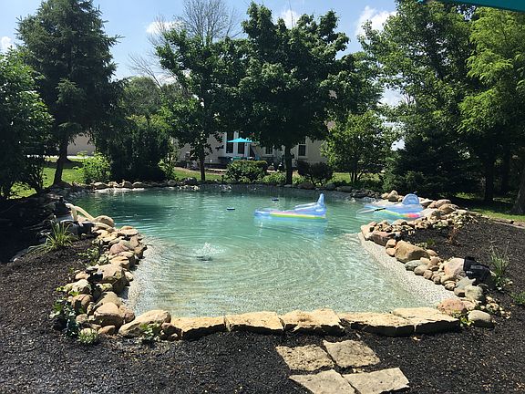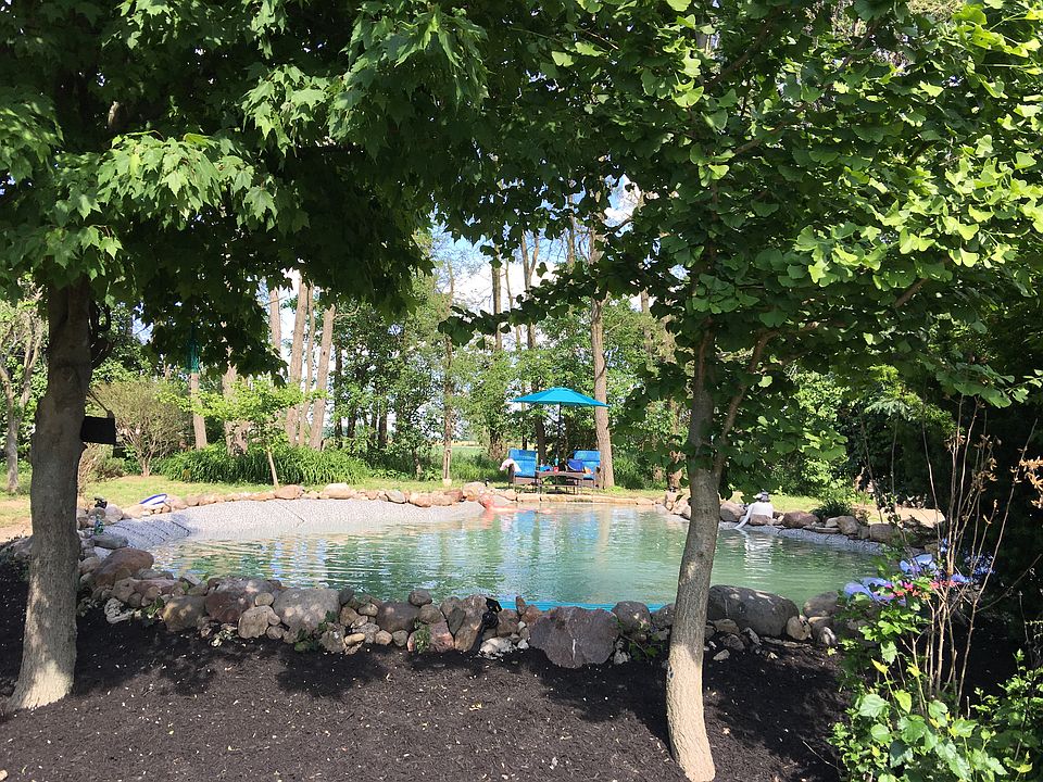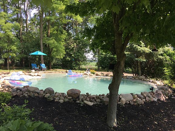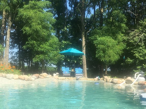 New furnace and pool liner 2019. New central air 2016. New windows, water softener, bathroom remodel, hard wood flooring 2015. Many other updates in the past 3 yrs. 1700 sq foot garage w 4 bays. One of the bays has concrete floor. Garden shed with work bench area also has electric.