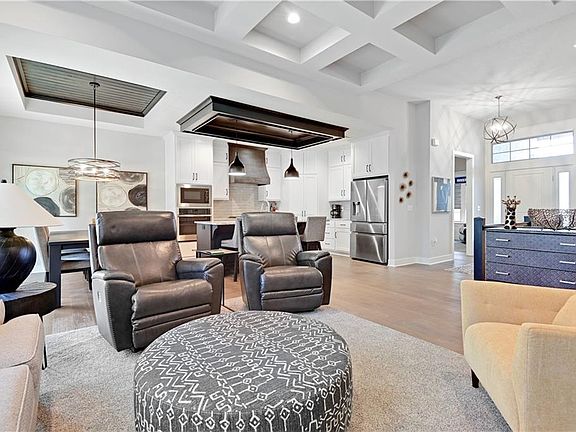 PRICE REDUCED! EXCELLENT VALUE!! COME OUT AND SEE THIS BARELY LIVED IN, MAINTENANCE-PROVIDED SHOWSTOPPER in the BEST location in town! Look no further - the popular Catalina by Crestwood Custom Homes boasts an 11-foot, STUNNING coffered ceiling, walls of windows, hardwood floors, and exquisite architectural design. From the entry, head into the luxurious kitchen - ready for entertaining. With a large island, granite counters, 5 burner gas cooktop, walk-in pantry, goose-neck faucet, S/S appliances and pendant lighting, this fresh, new space will be the perfect place to gather. On the main level, walk into a beautiful and spacious primary suite. The oversized bathroom features a huge, zero-entry, double-head, walk-in shower, soaker tub, and double bowl vanity with granite/quartz counter tops. Conveniently make your way through the large walk-in closet (3-tier seasonal storage) and go straight into the the laundry room (extra cabinets for storage and folding counter). There is a second bedroom/flex room for guests to stay or to be utilized as a home office. The lower level features a generous family room, 2 bedrooms, 1 bath, and a full wet bar with beverage center. Plenty of space in the unfinished area for extra storage. This home backs up to green space and has a beautiful, covered and screened in patio. Bonus - fences are allowed at Crestwood Village. Driveway is a private, single drive. Homeowners upgraded lighting, carpet, added gorgeous window coverings, tinted windows in the back - they did it all for you! Crestwood Village offers maintenance free - now your time is your own - no more mowing, trimming, mulching, weeding, or snow removal. HOA covers start up and winterization of your sprinkler system, exterior paint every five years and driveway repair/replacement. Great location - close to shopping, restaurants, trails and parks. Don't miss out on this great villa in a highly-desired location!