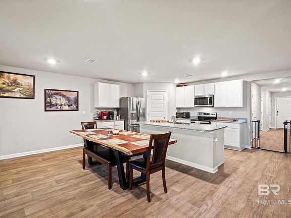 ASSUMABLE RATE OF 3.5% for VA Buyers!!! Welcome to this charming contemporary home built in 2022, nestled in a serene and peaceful neighborhood. Boasting a modern aesthetic with vinyl flooring throughout, this residence offers four bedrooms and two baths, alongside a convenient double car garage. The open layout seamlessly integrates a sleek kitchen adorned with stainless steel appliances, perfect for culinary enthusiasts. Enjoy gatherings or peaceful moments in the spacious backyard, complete with a covered patio ideal for entertaining guests or relaxing in private. Positioned in a tranquil locale, it ensures tranquility while remaining just a short drive away from the vibrant offerings of Pensacola. Don't miss the chance to make this house your home sweet home.