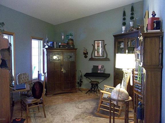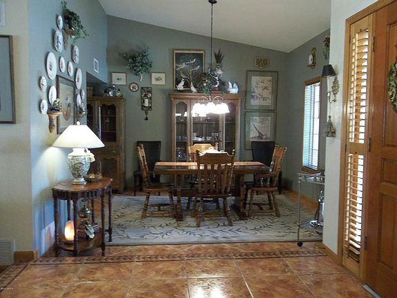 This semi-custom, beautiful & immaculate 3 bdrm, 2.5 bath home has many special features: formal liv room & din rm, spacious family rm w/ built in bookcases on either side of fireplace, vaulted ceilings, plant shelves, 4 c fans, attractive 18' tile; a fabulous kitchen w/ lg kit island, breakfast bar, pull out shelves, built in desk, custom cabinets, and a huge breakfast nook. Double door entry to mstr bdrm, walk in closet, exit door to back patio and a mstr bath w/double sinks and a separate tub & shower. Tiled 31' X 6' relaxing front cov patio & circular driveway. Healthy green grass backyard for family entertaining w/ 44' rear cov patio & other cement & brick patio extensions, BBQ area, pond w/ waterfall. APS easement on property. *See supplement for additional features*