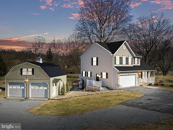 Nestled on 4.35 unrestricted acres, this beautiful custom built 4 bedroom, 2.5 bath home offers a rare blend of tranquility and convenience, complete with a spring fed creek that flows gently past the private deck and gazebo and the West Branch of the Antietam Creek, flowing through the rear of the property. As you arrive, the large driveway offers plenty of parking for guests, boats or even an RV. A beautiful paver walkway leads you to the covered front porch, perfect for enjoying a peaceful morning cup of coffee. Entering the foyer you will immediately notice the open floor plan and beautiful hardwood floors throughout the main level. The spacious living room is filled with natural light, creating a warm and inviting atmosphere. The kitchen features new black stainless appliances, a pantry, double sink, abundant cabinetry and a breakfast bar with ample counter space for meal prep, or a enjoying meal. The dining area, off of the kitchen, flows seamlessly to the rear maintenance free deck, making it ideal for entertaining. A convenient powder room and main-level laundry add functionality to the space. A beautiful oak staircase leads to the upper bedroom level. The primary suite is a true retreat, offering a walk-in closet with built-in organizers, LVP flooring and an attached bath featuring a luxurious walk-in shower and a bidet. Three additional bedrooms, two including custom closet organizers and one featuring luxury vinyl plank flooring along with a full bath, round out the upper level. The spacious crawlspace, accessed off of the kitchen, has a poured concrete floor and houses the water manifold system, a water softener system, UV light, waterproofing system and plenty of storage. Heading to the exterior you will find a low maintenance deck providing the perfect place to relax, listen to the creek and take in the natural surroundings. A small bridge off of the deck leads to a charming gazebo, ideal for outdoor dining and entertaining. Looking for a place to have some chickens or maybe even goats? We've got you covered with a chicken coop, shed, lean-to, possible stable and even a duck house! There are beautiful raised garden beds, with irrigation, ready for your spring planting and even include some mature asparagus plants and raspberry beds! The oversized two car detached garage with loft, is perfect for the car enthusiast and comes complete with it's own electric panel box. This one of a kind property is perfect for those looking to embrace country living while enjoying modern conveniences! Located minutes from downtown and just 10 minutes to the MD state line and I81. Room sizes and square footage are estimated.
