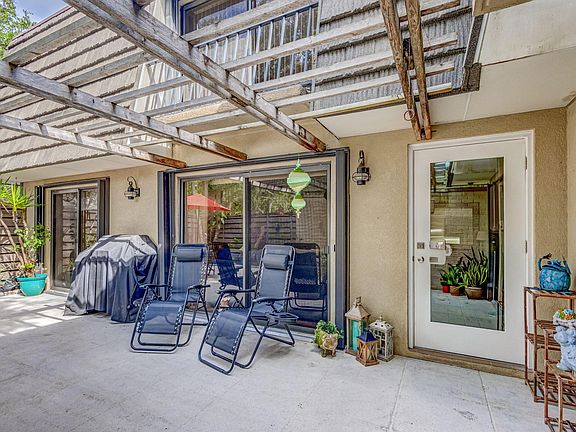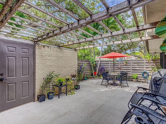 Spacious townhome offering 1488 SF A/C. VERY LARGE Primary bedroom with an oversized walk in closet. Second bedroom is on 2nd floor with a hall bath. There is a 3rd room on the main level that can be used as a third bedroom (with the easy addition of a closet) or an office/playroom, etc. All rooms, including the kitchen open to a large private courtyard via sliding glass doors. Sliding glass doors are equipped with ''accordion'' hurricane shutters for easy preparation in the rare event we are threatened. :) Open kitchen with a pantry and center Island. Beautiful stone accent wall in the great room and designer wall molding in the main level bonus room. Glenwood is a great community with awesome amenities including community pool, tennis courts, pickle ball courts, racquet ball, basketball hoop, kiddie park and a nature trail where neighbors meet while out walking their dog in this dog friendly community or getting a little exercise.