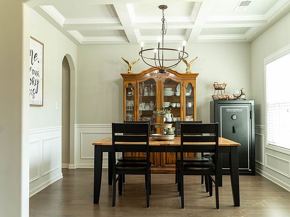 This lakefront home is truly remarkable! Step inside to find a well maintained 4-bedroom, 2.5 bathroom haven. The foyer leads to a formal dining room with coffered ceilings. Across the foyer sits a stunning home office with elegant glass doors. You'll discover spacious living areas adorned with high-quality finishes throughout. The oversized kitchen boasts granite countertops and a huge island overlooking the cozy living room with wood burning fireplace. Upstairs, all 4 bedrooms and the laundry room await. The primary bedroom, with its electric fireplace, offers a cozy retreat. Set on 2 acres with direct lake access, the property exudes serenity and charm. Indoors, engineered hardwoods and granite countertops add a touch of luxury, while the gourmet kitchen, equipped with modern appliances, caters to culinary enthusiasts. Outdoor enjoyment is effortless with a covered patio featuring a stone fireplace, TV hookup, and all-weather speakers—a haven for relaxation and entertainment alike.