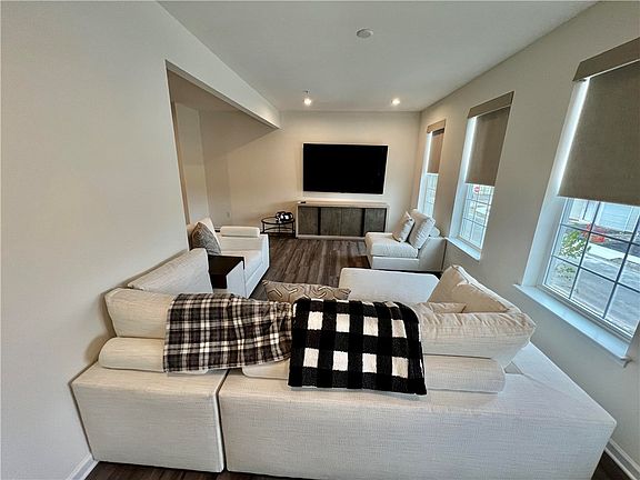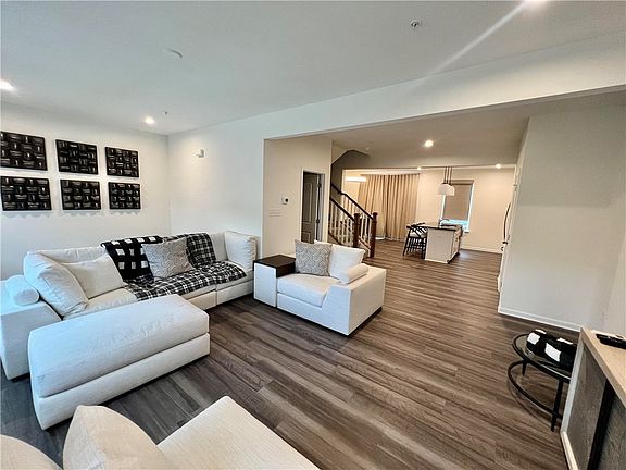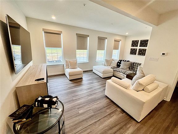 This stunning end-unit townhouse boasts an inviting facade with stone accents. The two-car garage provides ample space and convenience. As you step inside the garage level, you are met with a finished rec room and area that is already plumbed for a convenient and additional 1/2 bathroom. As you head up to the main level, the open-concept living area greets you with abundant natural light pouring through the windows. Higher ceilings and beautiful Luxury Vinyl Tile flooring further enhance this space. The kitchen features granite countertops, appliances, and a central island, seamlessly flows into the dining and living areas, perfect for entertaining. Upstairs, the spacious primary suite offers an en-suite bathroom and walk in closet. Additional bedrooms are nicely sized, with ample closet space. The outdoor deck provides a perfect oasis for relaxation or dining. This townhouse combines style and convenience, making it an ideal home for modern living.