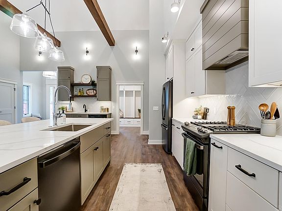 PRIME HOMES NEWEST CREATION, ONE OF A KIND DESIGN. Huge kitchen positioned in the center of the home with gorgeous vaulted ceiling, beams, and beautiful lighting. Large center island, quartz counters, and black stainless appliances. The convenient coffee bar offers an additional sink and workspace. The dining area has amazing built in cabinetry and bench seating. Luxurious spacious master suite with custom shower and very large walk in closet with custom organizers and drawers. Upstairs features 3 additional large bedrooms, 2 full baths, and rec/family room/5th bedroom. Pocket office, oversized 3 car garage nearly 1000SF, large covered patio, tankless water heater, 3 zoned heating and air conditioning, beautiful wooded lot. Home is absolutely stunning!