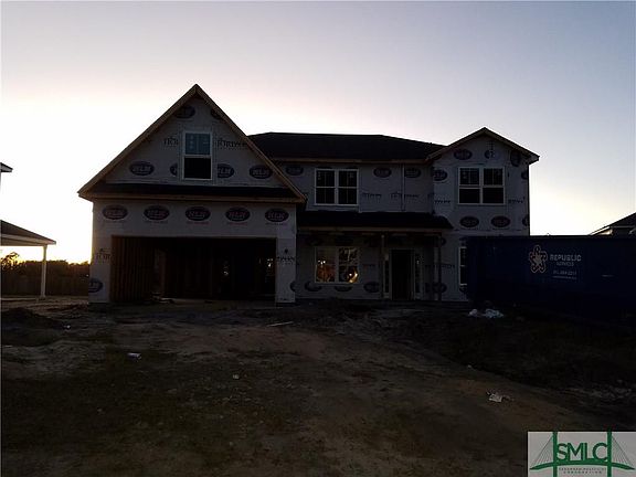 SOUTH EFFINGHAM SCHOOLS! The Stafford plan by Horizon Home Builders has a fully landscaped & irrigated front yard. 9' ceiling on the main floor with stunning 3" hardwood floors that shine in common areas. Custom hand-detailed trim package throughout the main floor for a southern feel. Gas vent less fireplace in the living area for the winter months. Upgraded gourmet kitchen with island, granite counter top with tile backsplash and Stainless Steel appliance package to include: wall double oven, cook top w/2 drawers below, built-in microwave/range hood, dishwasher & garbage disposal. Master suite is massive with sitting area, 2 walk-in closets and trey ceiling with fan/light. En suite has a separate 48" shower with door, 42" garden tub, comfort height vanity with double under-mount rectangular sinks and private linen closet. 10 X 10 dock for your enjoyment of the pond, covered rear patio, and tapered craftsman style columns with stone base and stone skirt on the front porch.