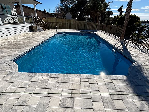 Stunning, newly constructed 3/2 SFR with over 3000 sf under roof on large landscaped lakefront lot. Tropically landscaped large deep pool with wrought iron pool barrier fence, outdoor privacy fencing all around property with gated access, tiered steps, concrete sea walls and terrances leading to private lakefront dock on Lake Martin. No flooding here. Custom kitchen with farm sink, stainless appliances, dishwasher, french door refridgerator, gas range, low profile microwave and pot filler. Kitchen pass through window to outdoor deck, plus 3 large sliding doors, opens the house to the rear deck with great light and ceiling fans throughout. Interior has premium finishes with large format marble tile in bathrooms, and chevron patterned wood look tile flooring throughout. Upscale Master on suite with soaking tub under fixed picture window overlooking pool & lake, dual floating vanities with led lit mirrors, custom rainfall shower with multiple shower heads. Custom closets with excellent lighting and storage. Ring camera & security system throughout including photocell flood lights with cameras at each exterior corner. Laundry Room with additional shelving and storage located between kitchen and garage. Large 2 car garage with smart door openers, gas injected hot water, and irrigation system. Much care and thought have gone into every detail of this upscale family home in Springfield, just off Highway 22 and Transmitter Road. Easy access to Panama City & Beaches, as well as Tyndall Air Force Base. Available to qualified tenants for long term and/or short term lease, rent price is based on terms of lease. Tenant is expected to take care of water, pewer, gas and garbage utilities . Pool maintenance, landscaping and wifi are included in lease. Owner will consider pets on a case by case basis with a non-refundable Pet Deposit. Available to highly qualified tenants for long term and/or short term lease, rent price is negoitable based on terms of lease. Wifi, pool maintenance, and landscaping are included. Tenant is responsible for water, power, gas, and garbage. Owner will consider pets on a case by case basis with a non-refundable Pet Deposit.