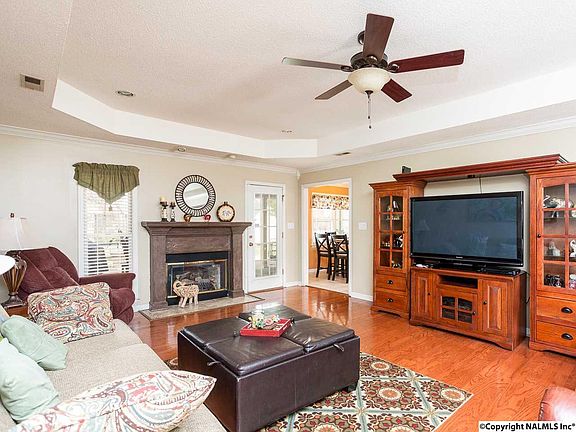 Beautiful 4 bedroom 3 bath ranch home located in an established neighborhood. The family room has wood floors, fireplace and trey ceilings. The large Master bedroom is tucked away in the back of the home. It has access to the covered patio out back. Master bathroom includes a spacious tile shower, jetted tub and double sinks. Large Eat in kitchen has lots of granite counter space and tons of cabinets. 4th bedroom is isolated and has its own 3/4 bath. Great for guests, older kids or a bonus room. Formal dining room with French doors could be used as an office or dining room. Great yard ~.80 acre. No close backdoor neighbors. Storage shed has electricity. Large 720 square feet detached garage set up as mancave with electricity, water and wall ac/heat. Roof ~ 2 yrs old. Heat pump about 3 years old. Side Entry garage.