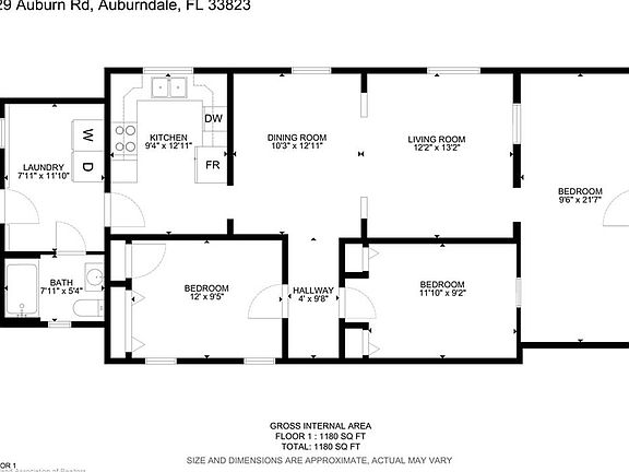 - Total interior livable area: 1,180 sqft