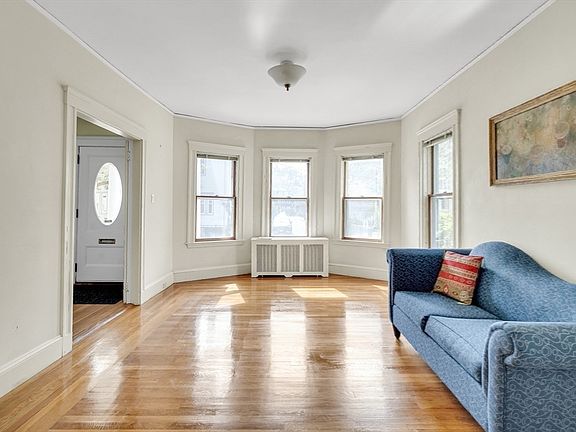 Fantastic opportunity for a homeowner or developer! Originally built as a two-family and now enjoyed as a spacious single-family, this handsome 10-room home offers five bedrooms, two full baths, and a blend of practical and tasteful updates. Numerous original details, including glass doorknobs, picture rails, decorative columns, and china cabinets, enhance the character. Breezy flow with 9 ft ceilings, oak floors, central hallways, and an open staircase accented by stained-glass windows. Renovated kitchen features custom cherry cabinets, decorative tile, and high-end appliances, including a Miele dual-fuel six-burner range. Updated bathrooms (2005, 2007), a bonus three-season porch (2009), gas boilers (2003, 2018), HW tank (2025), rebuilt front porch (2020), and 20-panel rooftop solar array (2021). Spacious fenced yard with level lawn, custom brick path, patio, organic soil, and irrigation system. Considerable potential for expansion in full walk-up attic, basement, or yard. Must see!