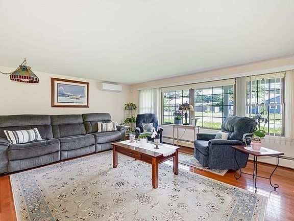 Situated on a double, corner lot this one FLR living, rambling ranch style home has all the space you need indoors & out. Inside you will find 3 spacious BRs, incl a primary suite w/ private bath. Both baths have been tastefully updated. No hauling laundry up and down with a washer and dryer on the first floor. A lovely kitchen with skylight and breakfast seating is a great space to enjoy morning coffee. When entertaining you have a large formal DR to hold all your guests, who can then spread out into the three season room to chat. You may just choose to snuggle up by the fire in the living room with a good book. All of these rooms are graced with newly installed, inviting hardwood floors. Outside you can cool off in the above ground pool, meander the perennial garden beds, or just grab a seat in the shade. This home also features not one, but TWO garages, along w/ a storage shed, a large partially finished BSMNT(and partially heated BSMNT), outdoor shower, irrigation and generator!