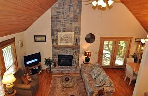 Do you want your own cabin in the woods? You should take a look at this one! Completely furnished 2 bedroom, 2 bath home with a floor to ceiling stone fireplace for cozy evenings. Each bedroom is a luxurious master suite with private bath and jetted tub. Screened in porch for summertime fun. Additional insulation has already been added & guttering too. Exterior maintenance by Condo Assn. All StoneBridge amenities available: golf, tennis, swimming pools, fishing lakes, playgrounds, walking trails, exercise facility, clubhouse & restaurant