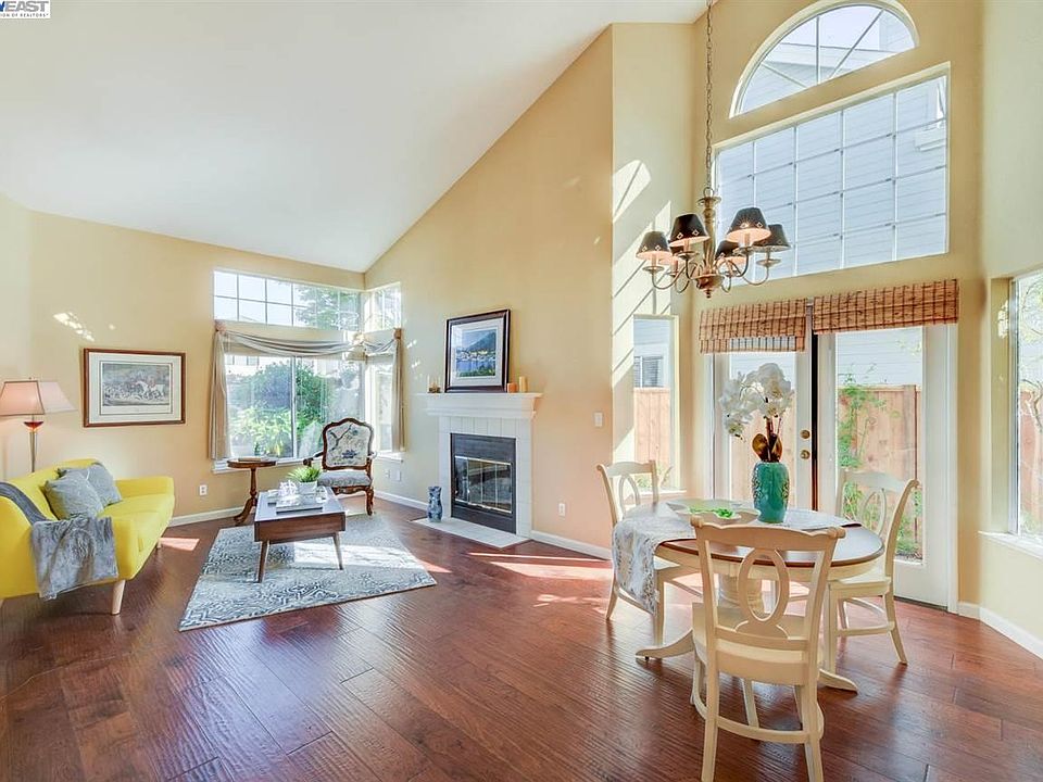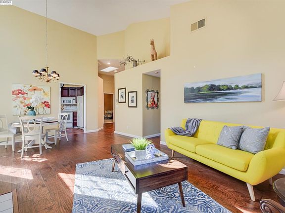 Best one level duet home with vaulted ceilings. Lots of windows and natural light. Spacious open great room with French doors off dining area. Excellent morning sun. Comfortable master suite with patio door access to backyard and high ceiling. Cute patio with mature plants. Functional kitchen with cozy breakfast nook. Just steps from SF Ferry, neighborhood parks. lagoon trail, Shoreline & Golf course.
