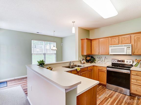 Great one owner home with fabulous curb appeal located in the Mooresville Graded School District in desired Curtis Pond, a community with pool and recreation areas! Charming 3 Bedroom 2.5 Bath offers open style for generous hosting with Kitchen overlooking Living area with designated TV Mantle and gas log fireplace and Breakfast, Berber carpet and LVP flooring, Formal Dining Room, Primary with showcase shelf lines has spa-like bath with Garden Tub and Separate Shower plus Bonus with unlimited possibilities! You will enjoy your time outdoors surrounded by fenced plush lawn perfect for entertaining! Dishwasher is new!