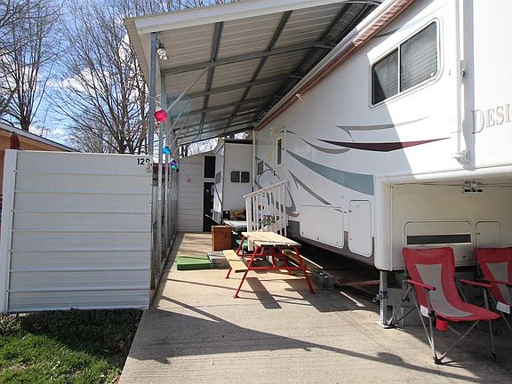 37 ft. 2002 Jayco camper with three slide outs. Concrete pad and tall carport over camper. You also have a 10x10 building wired and plumbed for washer and dryer. Three outside water bibs and lights. There is an aluminum privacy fence around three sides. Check out all the Foxwood amenities, indoor pool, Olympic size outdoor pool, tennis courts, play ground, boat ramp, day dock, club house and restaurant just to name a few. This is Great get away!!!