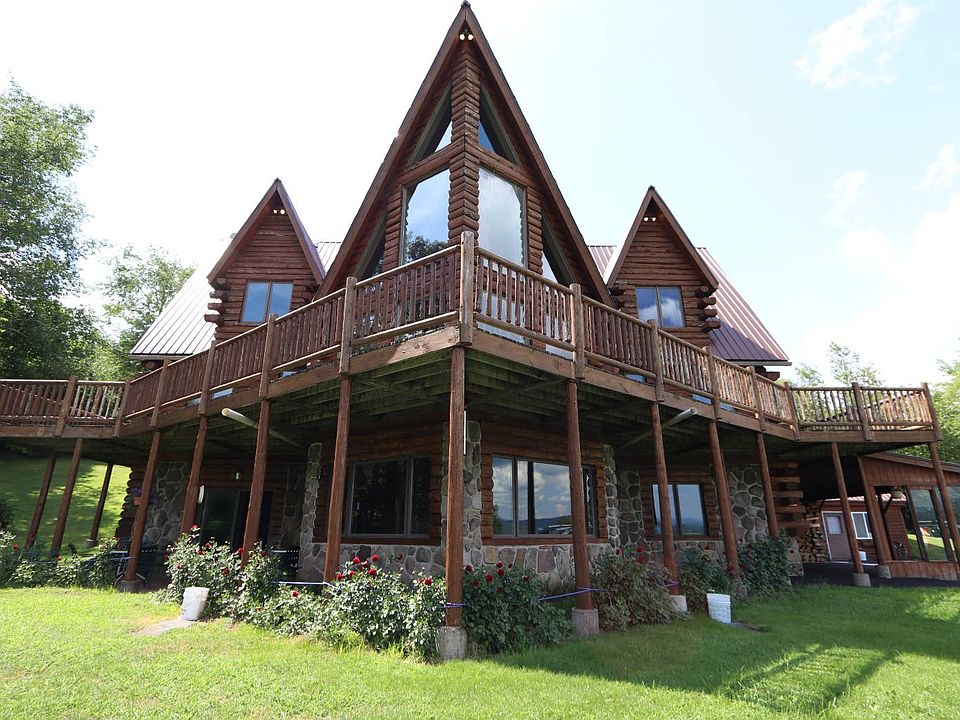 This one of a kind log cabin is a dream home for peace, quiet and nature in the Catskills. Beautiful mountain views, soaring ceilings, and a two story stone fireplace are just some of the amazing qualities of this home. A total of 2,688 square feet, the ground floor features a den with wood stove, leading into a beautiful open / eat in kitchen, one full bathroom, another recreation room, and the home's very own sauna! Leading up the 2nd floor (equipped with stair lift) is a large open living room with sky high ceilings and HUGE windows facing the outer property. There are 2 grand pianos on this floor which can stay! Additionally on this floor is another bathroom, a master bedroom and another bedroom. Leading up to the 3rd and top floor is the grand master bedroom, which has a private balcony with breathtaking views of the property and Neversink Reservoir. The master bathroom features a jacuzzi tub and shower with a dormer window. Another bedroom & bathroom on the top floor. There is an attached garage, wrap around terrace on the perimeter of the house, and detached shed/workshop. Truly a one of a kind home perfect for anyone who appreciates nature, land, peace, quiet and space.