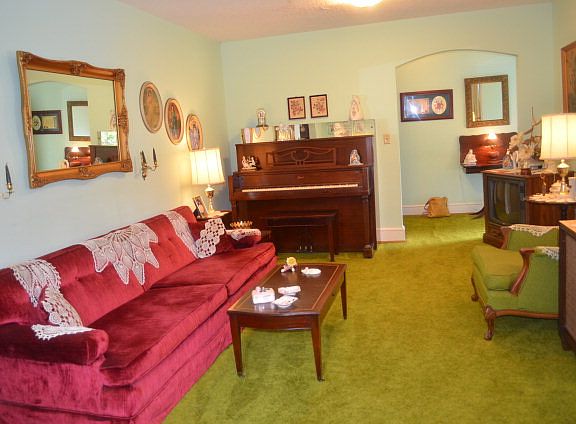 House located on a large corner lot with mature trees, flowers and shrubs, in a neighborhood within walking distance to the hospital, stores, shopping, schools, and churches. There is an enclosed mechanic's garage that can accommodate two cars, with a covered shed attached. There are hardwood floors beneath carpeting except kitchen and den. Bathroom was recently renovated. washer and dryer stay