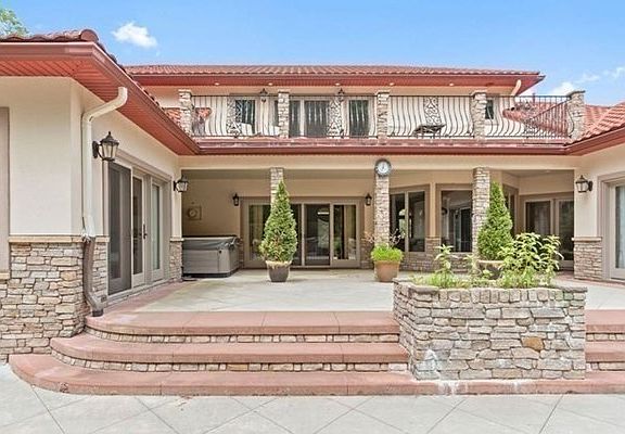 EXPECT TO BE IMPRESSED with this one of a kind, MEDITERRANEAN Style Estate with a contemporary flare which EXUDES QUALITY! Set back from the road on over an Acre, this PRIVATE RETREAT offers a State-of-the-Art Gourmet Kitchen w/Meile Appliances & Coffee Bar; Spacious EnSuite Primary Bedroom, SECOND Ensuite Bedroom on 1st Level (perfect for in-laws), Home Office, Open Floor plan that spills right outside onto a covered patio for added seasonal living space; Finished lower level w/half bath, massive family room/media room, game room w/kitchenette. Imagine sipping a beverage from the 2nd floor 29 x 11 Balcony overlooking pool area! Exterior boasts a heated, in-ground saltwater pool w/cascading water fall, hot tub, outdoor grilling area w/gas line & decorative ambient lighting. No expense or detail spared with the construction of this home - Electric car outlet, Steel & aluminum "terra cotta" look roofing tiles/50 year, Surround Sound, C/Vac - too much to list! Motivated Seller!