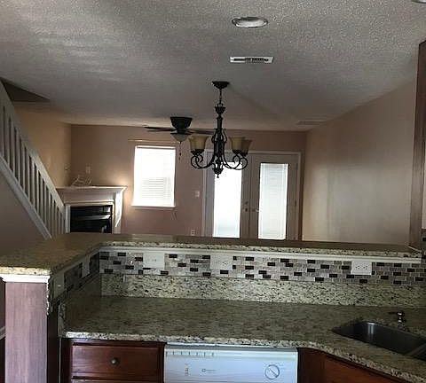 All the extras already here! Beautiful granite kitchen counters, designer glass tile backsplash, recessed lighting, wood floors, window blinds, clear shower doors in both baths, patio french doors w/ encased mini blinds. upgraded light fixtures, corner gas log fireplace, privacy fence, extended entertaining patio area. Community pool and convenient to Wendover amenities!