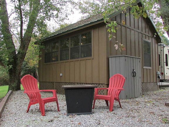 Looking for a serene mountain getaway? This is a gated community nestled in the North GA Mountains with Amenities - Pool, Pavilion, Clubhouse, and lots of planned activities! Walk into this newly updated, tastefully woodsy, wildlife decorated cabin! You will love the walls of windows that bring views of the surrounding greenspace and frequent deer sightings right up to you! An open plan with vaulted and beamed ceiling is enhanced with a unique tree bark fan! The roomy kitchen has a graphite design farm sink, oil rubbed bronze faucet, lots of cabinetry, including a built in lazy Susan and like new whirlpool refrigerator with icemaker, a self cleaning oven plus microwave. The breakfast bar is a granite look and has swivel bar stools that stay. Take a nap on the comfy sleeper sofa, or in the 10'9"X10'10" sleeping loft. The bath has newer upgraded bronze fixtures, a copper look mirror and sink, a standard toilet and closet. Real glass windows and heat pump will keep you comfortable at all seasons. The upgraded levolor blinds complete this warm decor. There is plenty of parking room for your bigger RV and vehicles too. A gravel patio with firepit overlooks greenspace for you to enjoy! The golf cart can be purchased separately. Rarely does a cabin this new come along, so call us now! Agents are owners in Paradise Valley, call and we will give you more info! Paradise is a seasonal living vacation community so no full time living available.