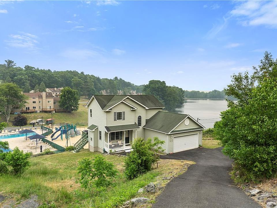 Fantastic Opportunity To Own This Well Maintained Beachfront Home w Sweeping Lake Views in Amenity-Filled Saw Creek Estates! Located minutes from Bushkill Falls, The Delaware River National Recreation Area, and with easy access to Route 80, this is the perfect getaway for someone looking to have amenities right in your backyard! With all this, the home is easily valued in the mid-$300s, but you can own it at this great price if you can deal w the one negative - a down-sloping driveway. If you're not a confident driver, this won't be the one. But if you're comfortable behind the wheel - wow, what a value you can get here! Central Air, 2-car garage, second floor balcony and massive deck overlooking everything. Public water/sewer too! Call to Find Out More and Schedule Your Tour Today!