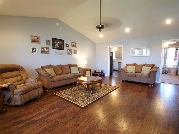Updated! Open Concept! MOVE IN READY! This brick one level home located a short walk from LO Youth Ballpark is ready for your family! Inside this home: large living room with vaulted ceiling, updated kitchen features granite countertops, stainless appliances and large dining space, 4 bedrooms, 2 baths, gorgeous wood laminate flooring, new vinyl flooring, and utility room. Attached garage, privacy fenced backyard, above ground pool, are all ready for summer time toys and outside fun!