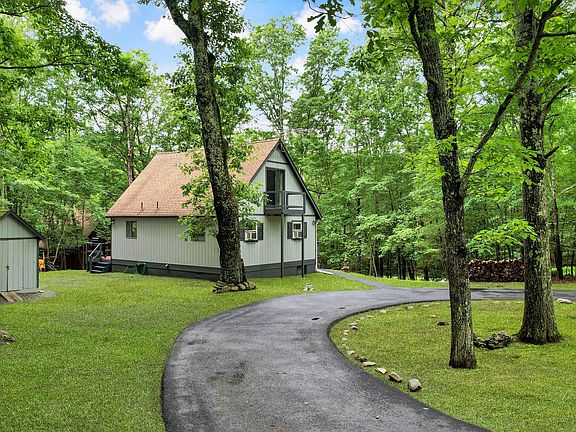 A FREE HOME WARRANTY COMES WITH THIS CHARMING CHALET WITH CATHEDRAL CEILINGS, A WOOD BURNING BRICK FACED FIREPLACE, & LOVELY SCREENED IN PORCH! Situated on .38 acres and a corner lot, the private community this property is located in offers beaches & lakes, a community pool & playground, a baseball field & basketball courts! Outside a turn-around newly sealed driveway leads to story-book curb appeal! Inside, cozy up to your wood burning fireplace on cool summer nights under your high ceilings with friends & family! An open concept is perfect for entertaining! Exposed beams, views of tree-tops, & tons of natural light bring nature indoors. Two bedrooms & full bath on the main floor. Upstairs a large family room & new balcony! Relax outdoors in your screened in porch or deck!, Beds Description: 2+Bed1st, Baths: 1 Bath Level 1