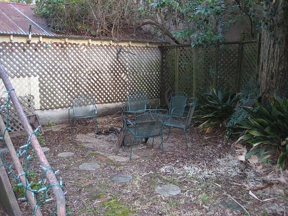 Charming 2BR/1BA apartment full of character in a quiet street in downtown Lafayette. Beautiful hardwood floors; large dining and living room area filled with natural light, kitchen leading to a secluded tropical New Orleans style courtyard with mature bamboos/banana trees and brick fountain. Central A/C; Off street covered parking space; separate laundry room with washer/dryer connections; storage space. Walk to restaurants, festivals, shops and museums from your private retreat.