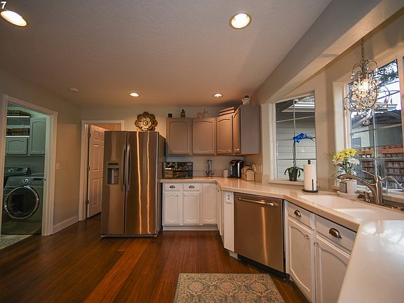 Beautiful 3 bd, 2 ba home situated on a corner lot. 1886 sqft home offers a gorgeous updated kitchen w/ stainless steel appliances, corian counters, & new hardwood flooring throughout. Vaulted master has w/i closet, updated bath w/ marble countertops & slider to patio. Enjoy the amazing outdoor area that's perfect for all entertaining needs! Patio, covered deck, raised garden beds & water feature.