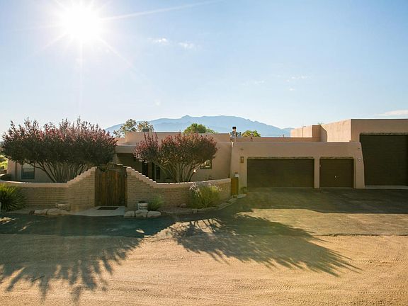 Custom home in the heart of Corrales. 3 bedroom, 3 full bathrooms. This home has 2 master bedrooms, steam shower and soaker tub inmaster bath, 2 living areas, a beautiful open kitchen plus stunning views of the Sandia Mountains. Backyard is fully landscaped with an outdoor kitchen and fountain. Large 3 car garage 30'x24' plus an over sized RV garage 15'x44'Recent updates include 2 new instant water heaters, 20kw Enphase solar system, epoxy flooring in garage, heater in garage, Nest thermostat, surround sound in media room, Elastomeric seal on stucco,new toilets, ADT surveillance system with cameras and portable alarm fobs.